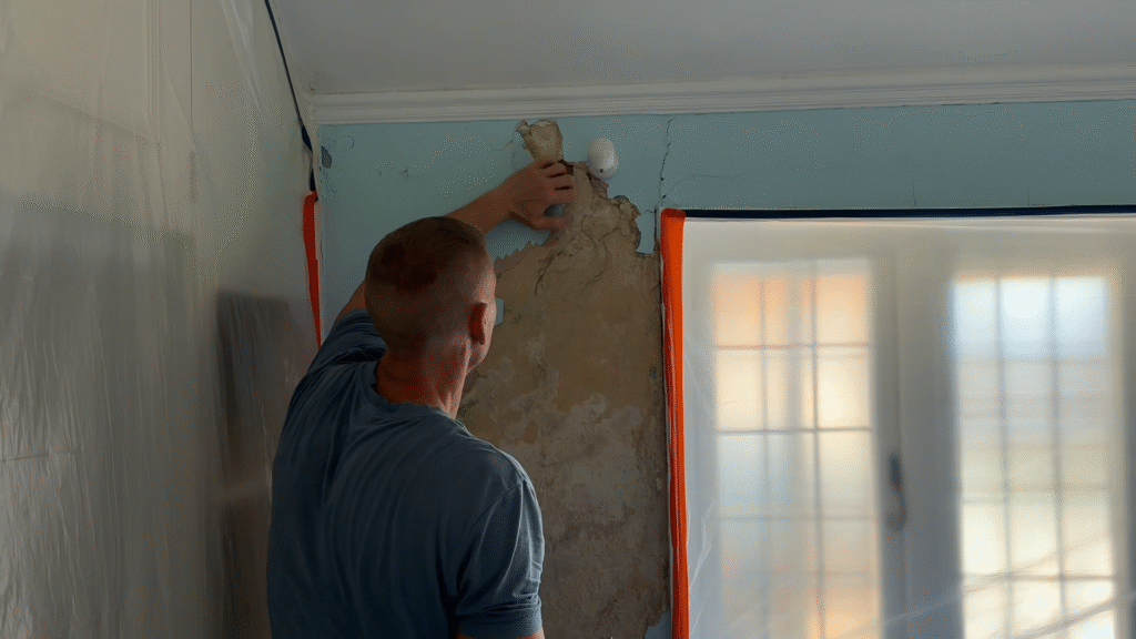 Once the area is secure, inspect the damaged wall carefully. Look for blistered paint, deep cracks, or loose plaster. Use a wallpaper scraper or spatula to remove any unstable material.